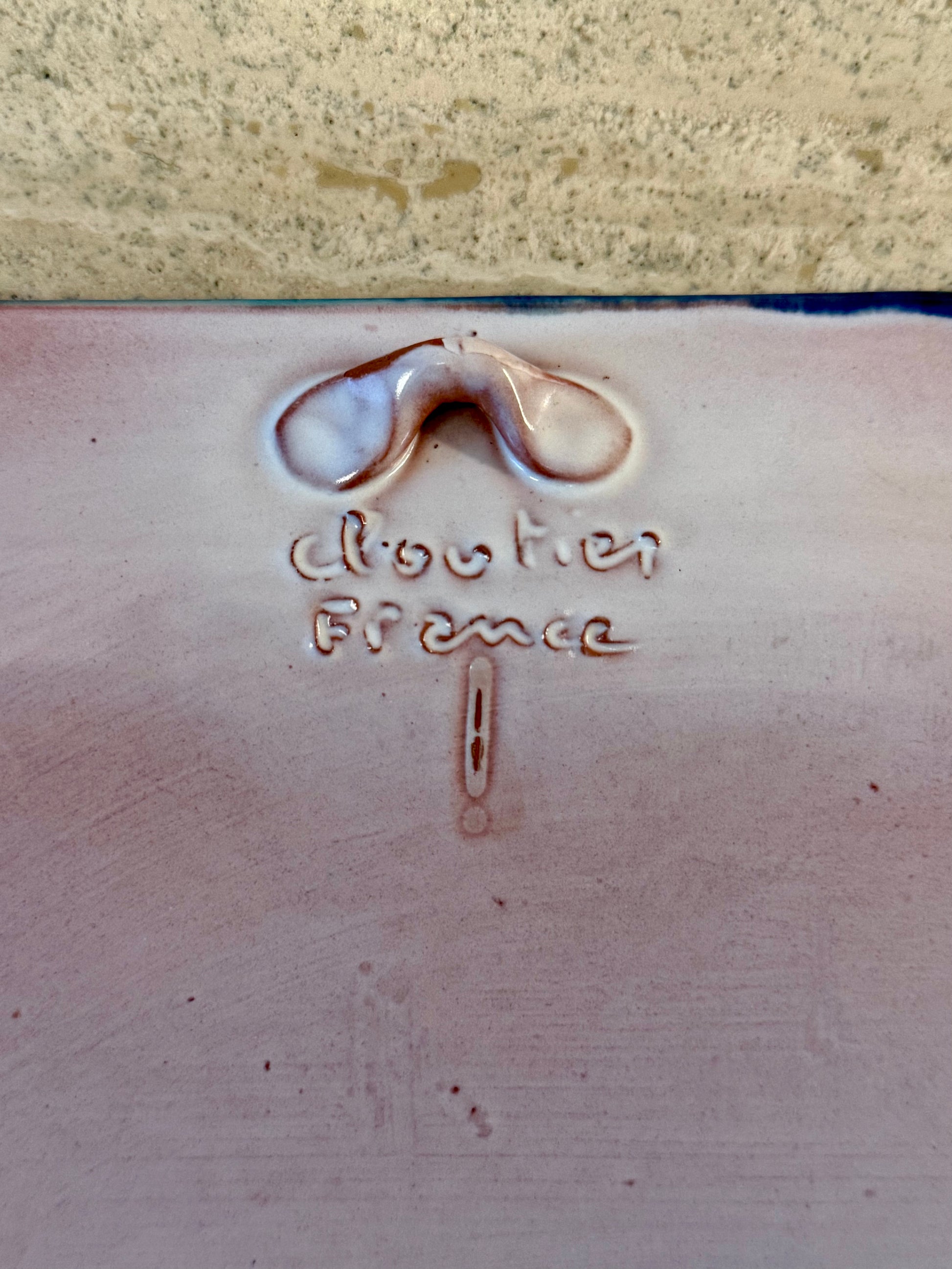 Both decorative and functional, this piece can be used as a small serving dish, a vide-poche, or displayed as a wall-mounted decorative object.